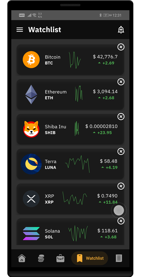 允许您创建自己购买的加密货币配置文件以在应用程序内监控