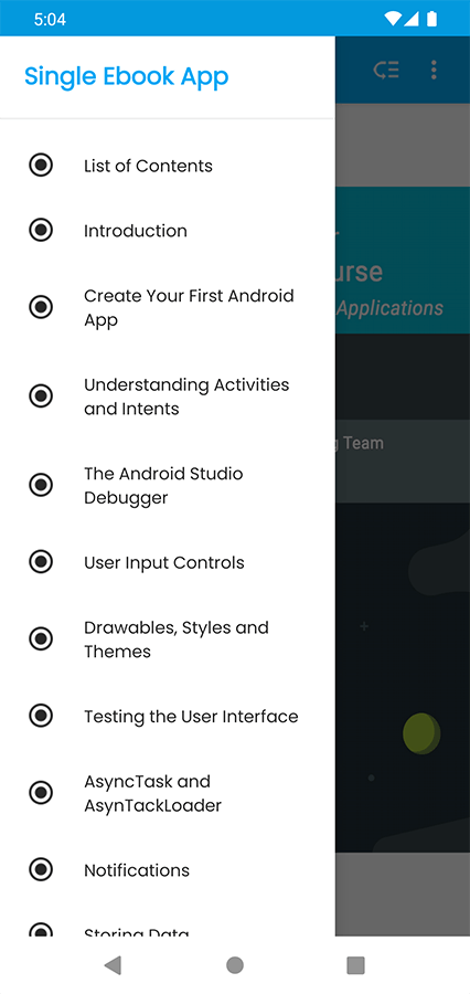 Single Ebook App是一款原生Android App,以pdf格式显示电子书,电子书和其他设置从JSON配置以进行远程配置,在Android平台下运行并使用Android Studio和Java编程语言构建,使应用程序原生运行,快速流畅 . 实施 Google Material Design UI,让应用在设计和用户体验上更加美观。