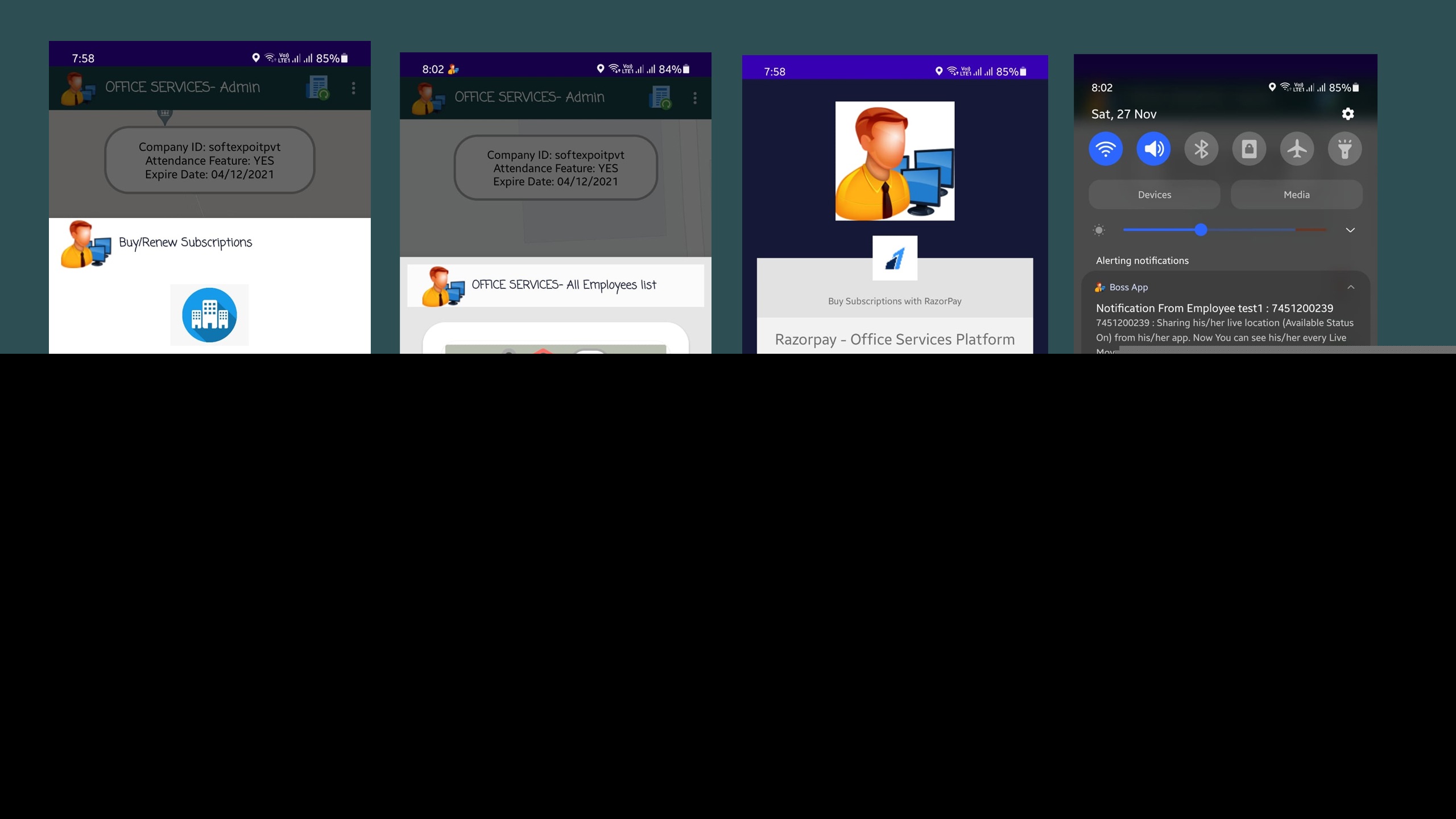 基于订阅的 OFFICE 服务 – 基于员工/现场销售人员/现场工作人员实时实时 GPS 跟踪和历史保存 [员工应用程序 + 老板应用程序 + 超级管理员应用程序] – 完整系统采用实时实时 GPS。出于商业目的,向许多公司出售订阅,以跟踪其员工/销售人员/现场工作人员实时直播和商店历史/出席情况。作为企业,您可以推出此产品并可以在全球范围内销售您的订阅,许多公司老板会购买您的订阅以实时跟踪他们的员工实时 + 历史 + 出席。后台位置跟踪功能始终启用。