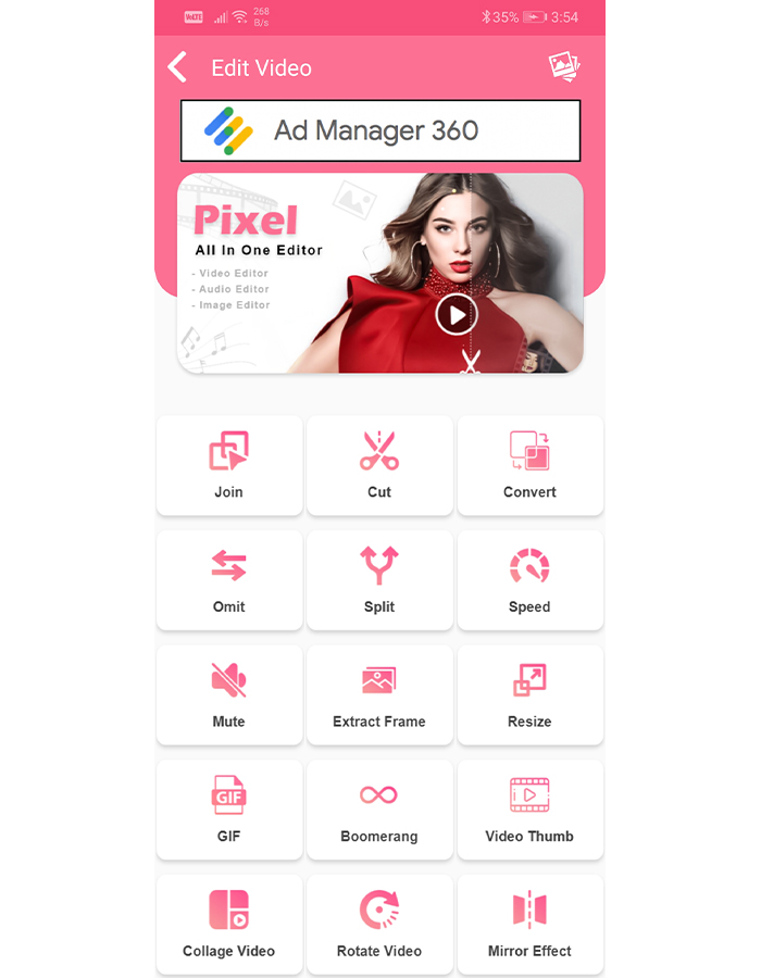 多合一音频和视频编辑器是篡改音乐和视频文件的最佳应用程序之一。 它提供了许多功能,如剪切、视频到 GIF、回旋镖、视频效果、黑白视频、反向视频、添加音乐、裁剪视频、视频水印、视频拇指、拼贴视频、旋转视频、镜像效果、加入、省略、转换 , 分割, 静音, 提取帧, 调整大小, 快动作, 和更多的功能, 这些都是非常用户友好的。