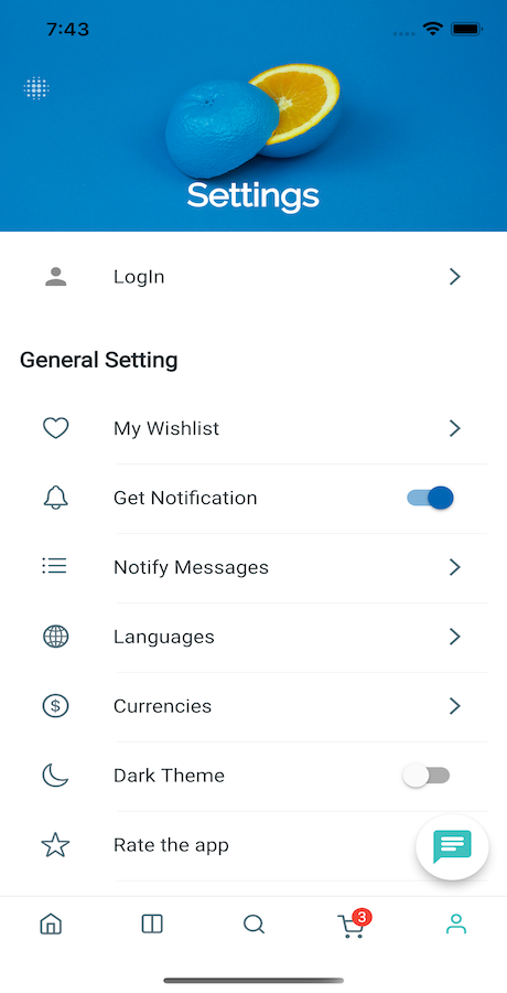 强大的用户设置——查看愿望清单、订单跟踪、应用商店评分应用、深色主题、智能聊天设置、切换语言、启用推送通知。