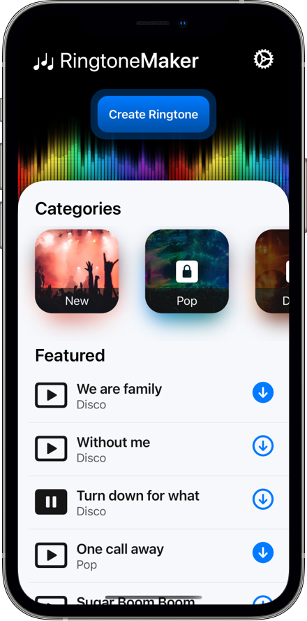 – 用户可以选择从原生 iOS 文件应用程序导入自己的 .mp3 文件。我们实现了原生 MP3 Cutter 功能,允许用户剪切他们的 .mp3 文件并将其转换为铃声。您只能剪切 .mp3 文件,最长持续时间为 30 秒。
