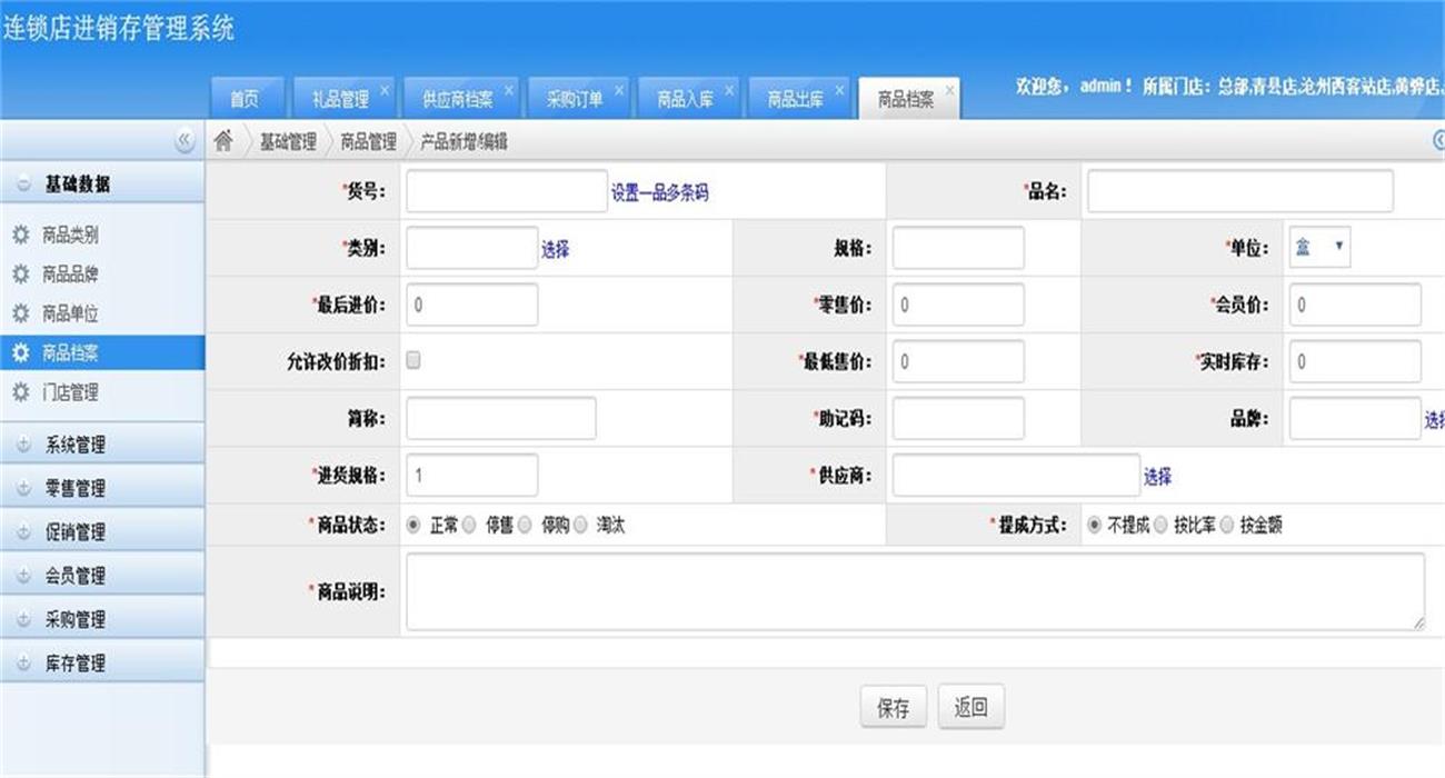 5、 并且还有强大的商品档案管理,促销计划管理 ,零售管理,会员管理,供应商管理,库存管理,权限管理,报表统计等功能。