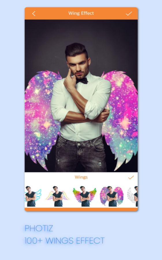 Photiz 让您有机会用艺术、滴水、表情符号、魔术、霓虹灯、轮廓、叠加、飞溅、翅膀效果装饰照片。
