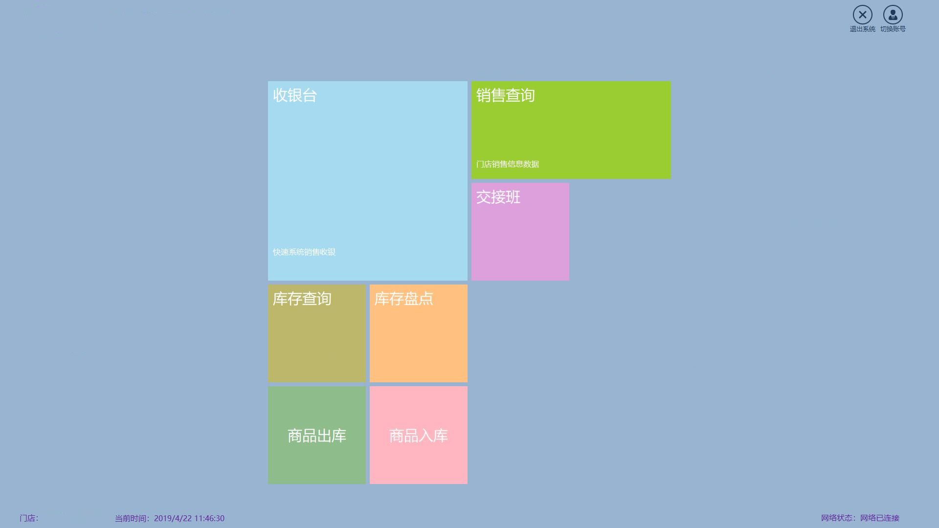 客户端功能描述收银台、销售查询、库存查询、库存盘点、商品出库、商品入库、交接班几大模块组成;