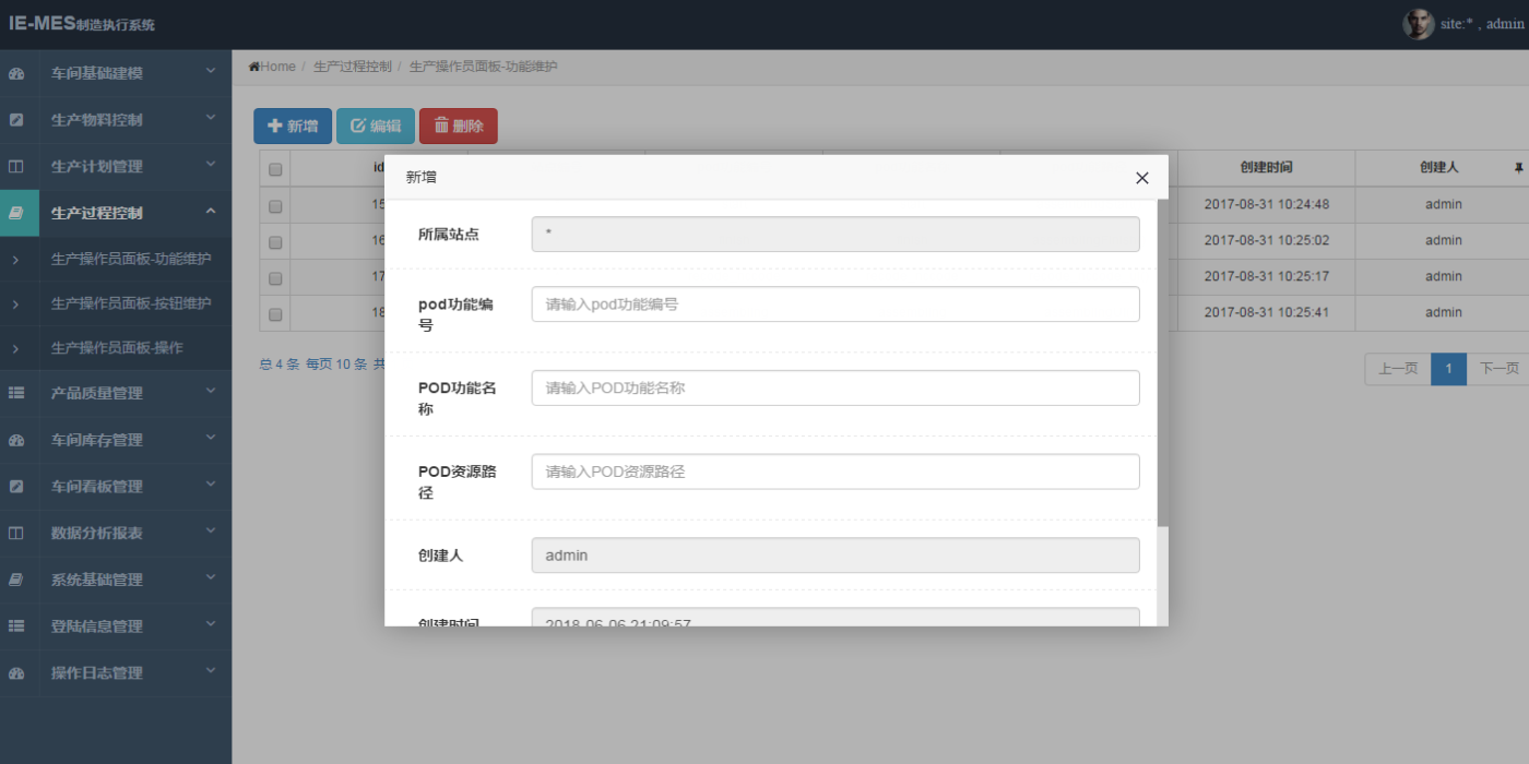 主要模块有:主数据管理、质量管理、工艺文件管理、连接池监视、操作日志、数字化平台、角色管理、工单管理、赋码管理、物料进出管理、用户管理、字典管理、设备管理、菜单管理、工作流引擎。