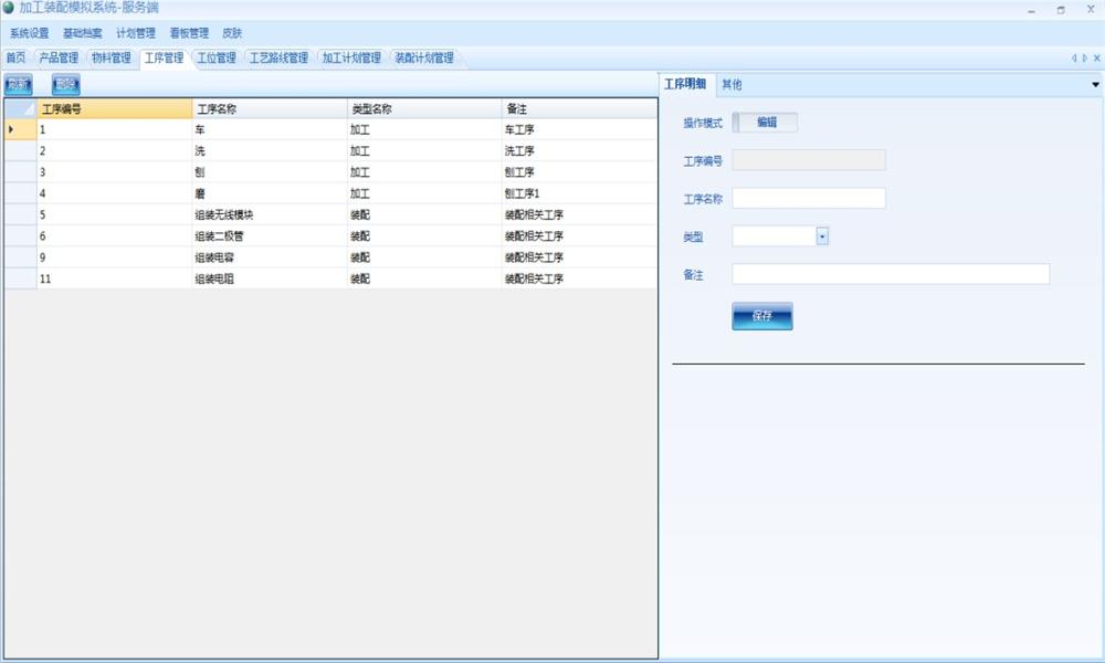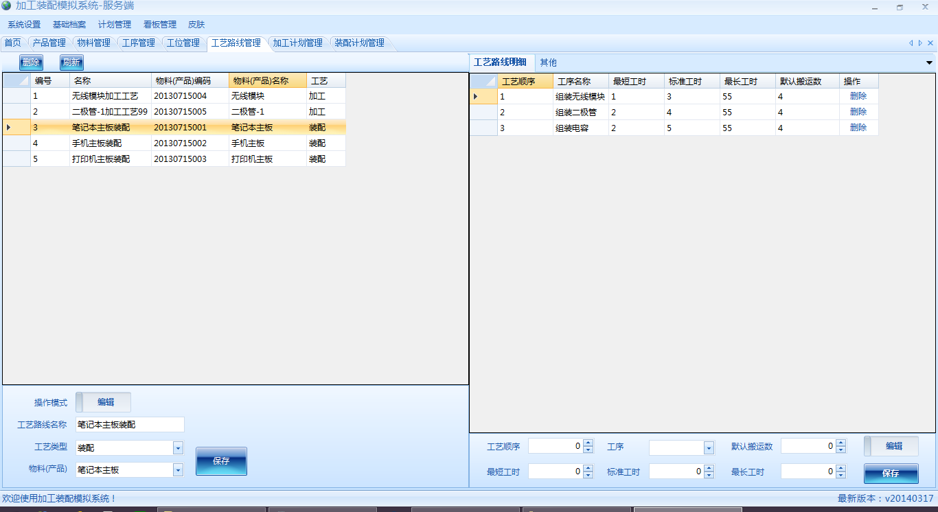 工艺路线管理功能:浏览、新增、编辑、删除、保存明细。