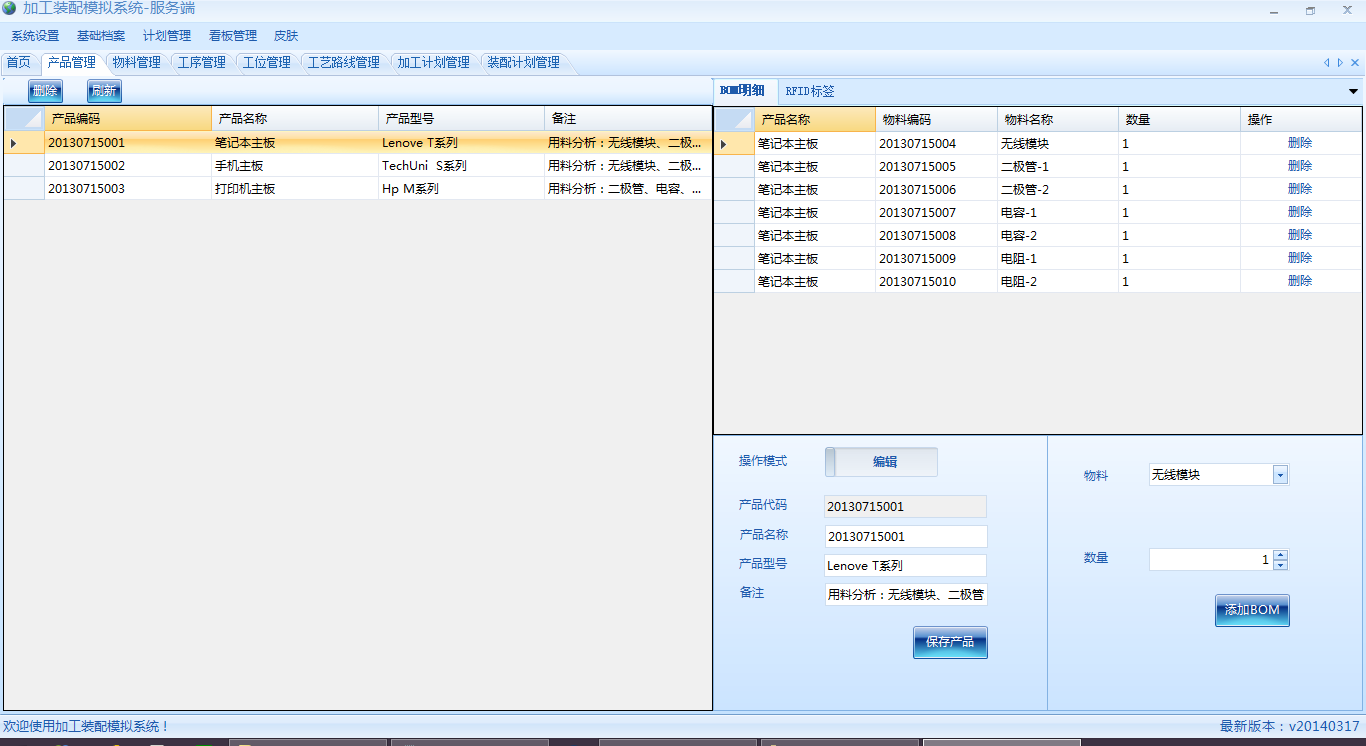 1、基础档案:产品档案、物料档案、工序、工位、工艺路线