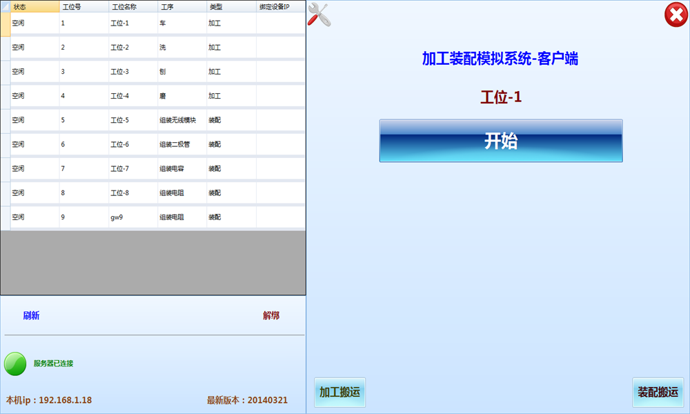 客户端用来实时模拟加工和装配在生产环境中的真实操作情况