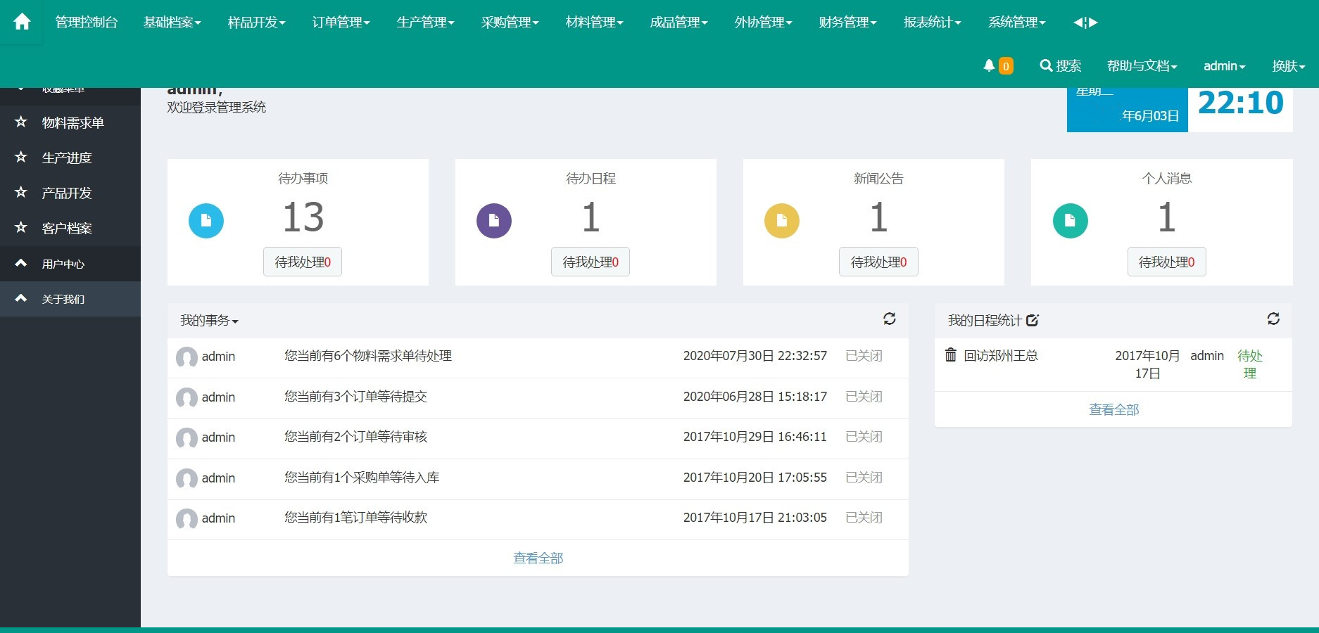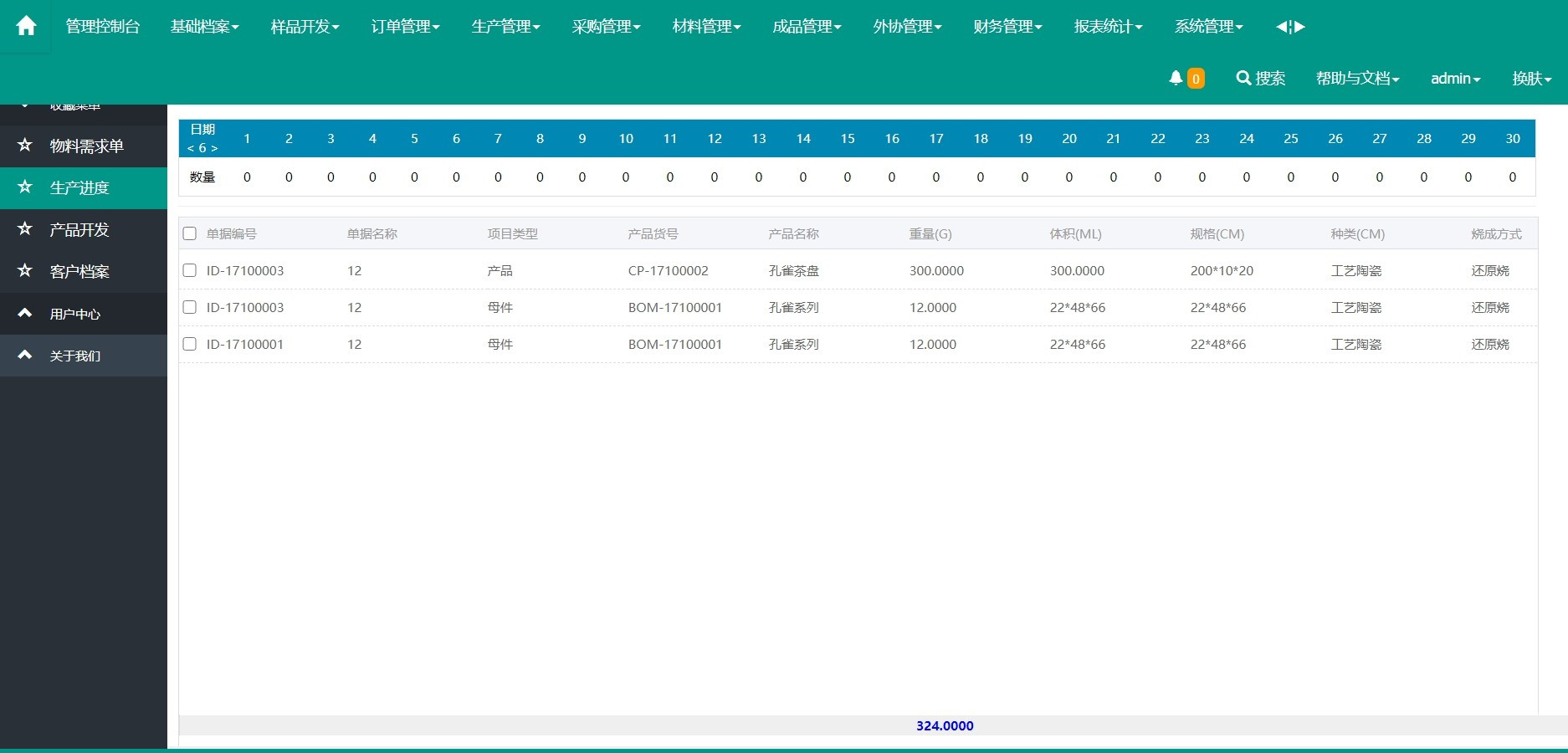 生产待接收 生产施工单 生产单项目 模具指令单 生产排产 生产登记 生产进度