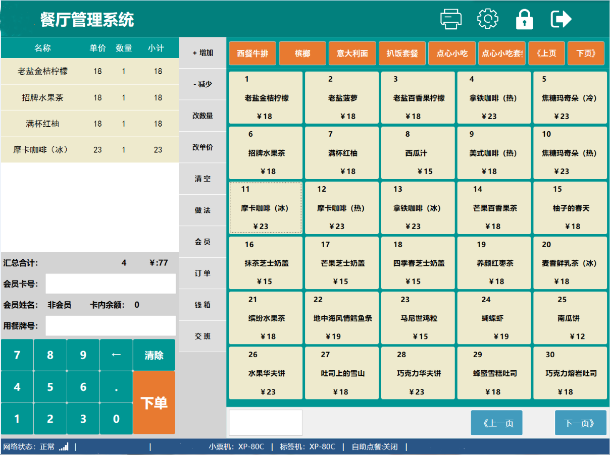 1、收银管理:开台、预约、结账、改价、改数、口味、做法
