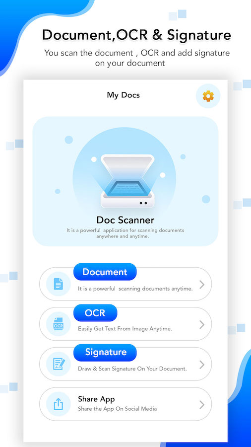 Doc Scanner 是一款免费的扫描仪应用程序,可帮助用户扫描、编辑数据并将其存储到智能手机、iPad、平板电脑和计算机中。 使用 OCR 提取文本并将 PDF 转换为 Word 等。