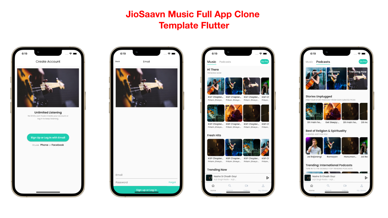 JioSaavn 音乐完整应用克隆模板 – Flutter 2.8.0+ 版是一个 Flutter 完整应用模板,可让您在 Android/iOS 上使用您的应用 UI 页面,该应用的许多不同功能已被开发为提供流畅的用户体验所有用户。