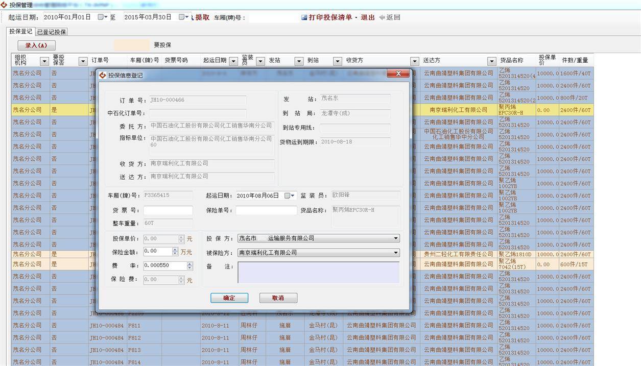 4、保险管理:投保清单、出险情况统计、出险情况统计等。