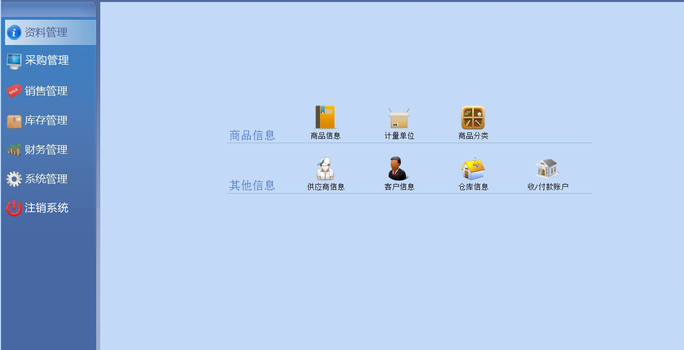 (5)客户信息维护(6)仓库信息维护(7)收/付款账户维护