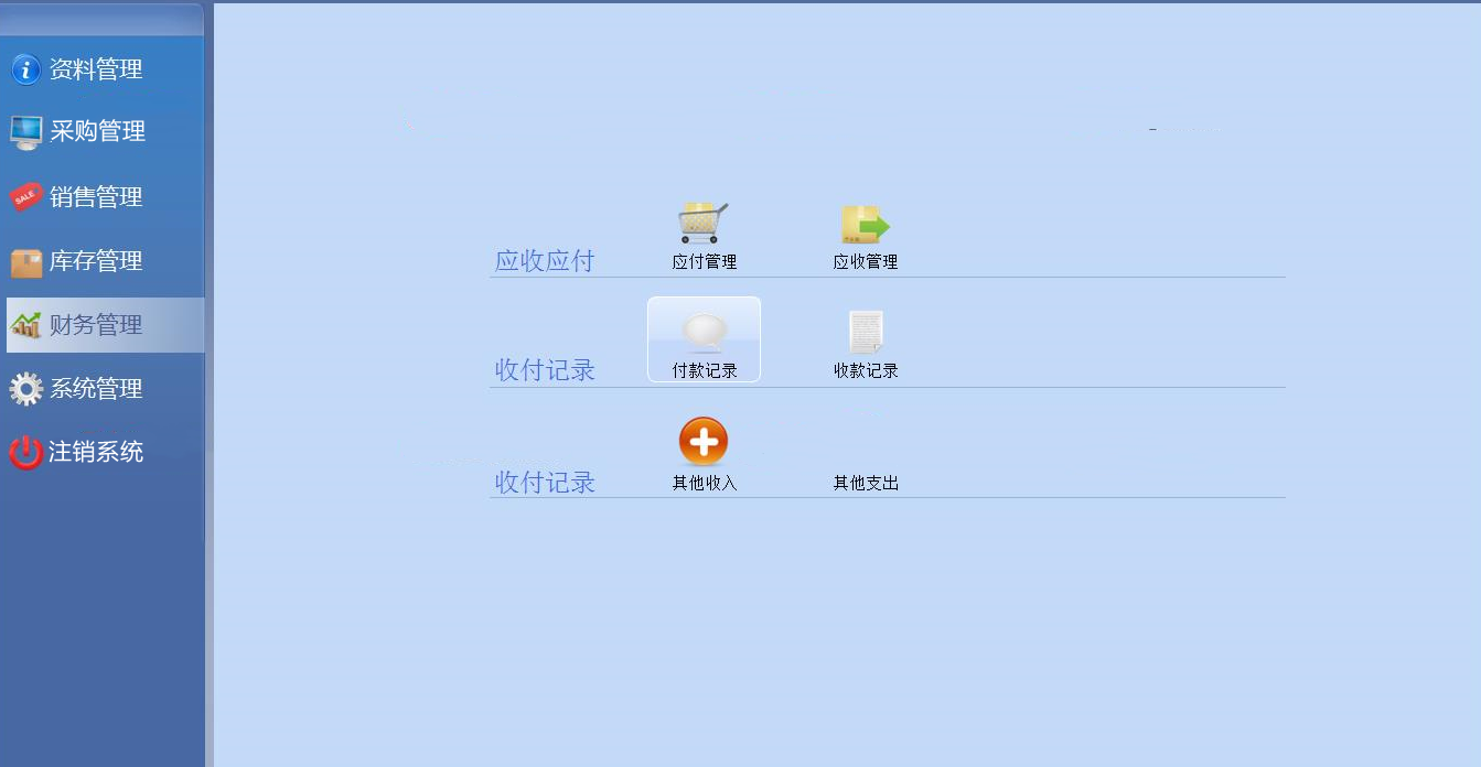 (1)应收管理(2)应付管理(3)收/付款记录(4)其他收/支管理
