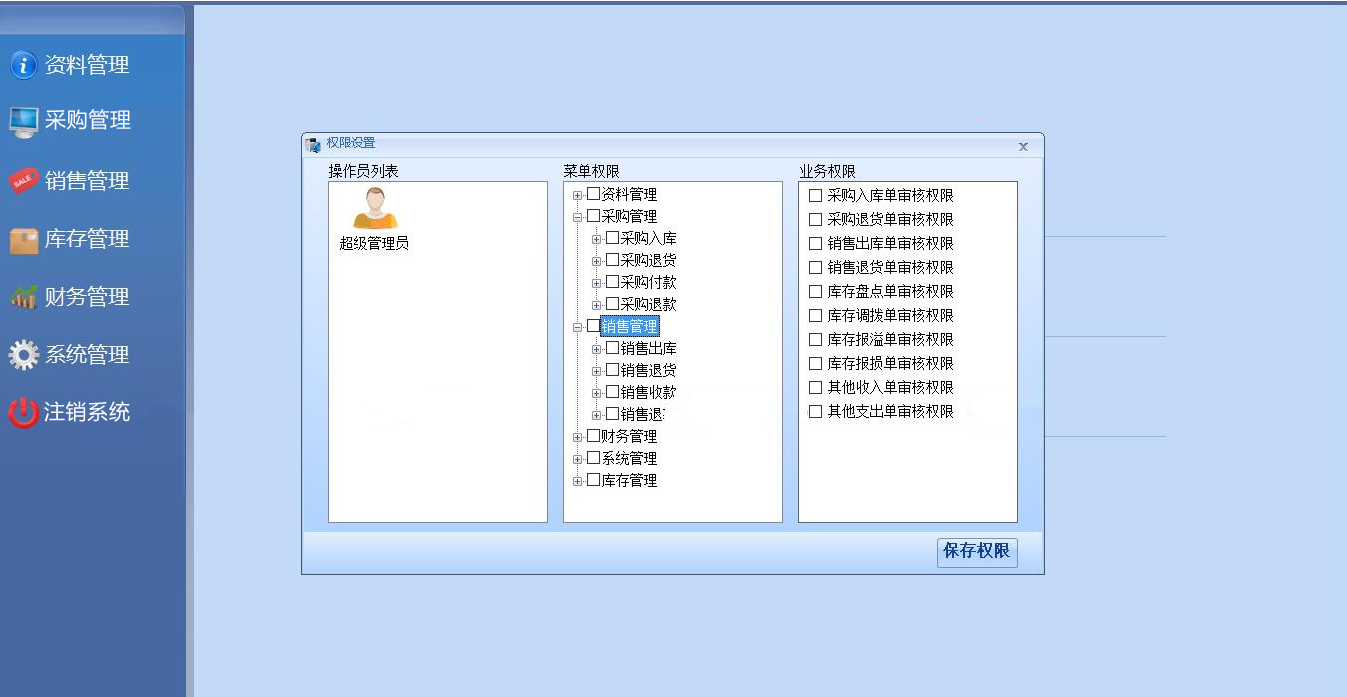 7、完备的日志管理:库存修改、删除、退货跟踪,操作员的删除、修改、作废均有记录。