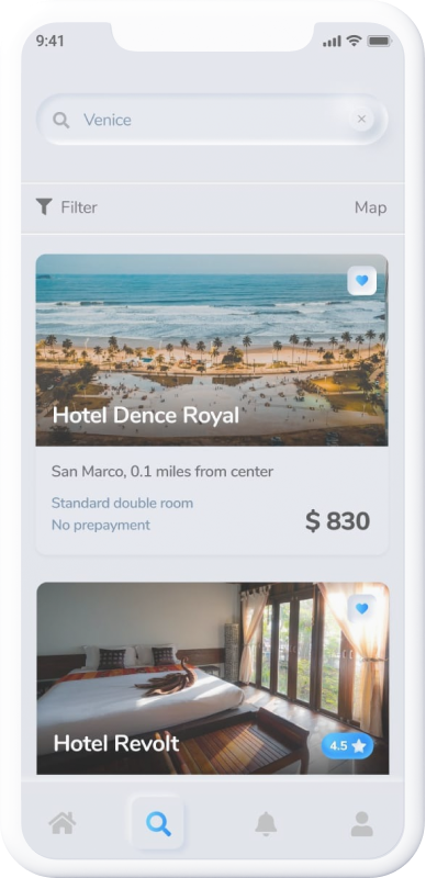 旅行预订应用程序 UI 套件将节省大量时间来开发独特、整洁、设计简洁的移动应用程序,用于在线度假村、酒店预订。它带有Android,iOS版本。因此,您只需集成自己的后端(管理面板)并使用 API。因此,您可以使用此应用程序 UI 来实现您自己的应用程序。