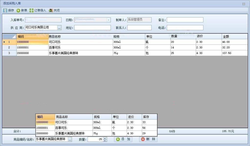 添加采购入库