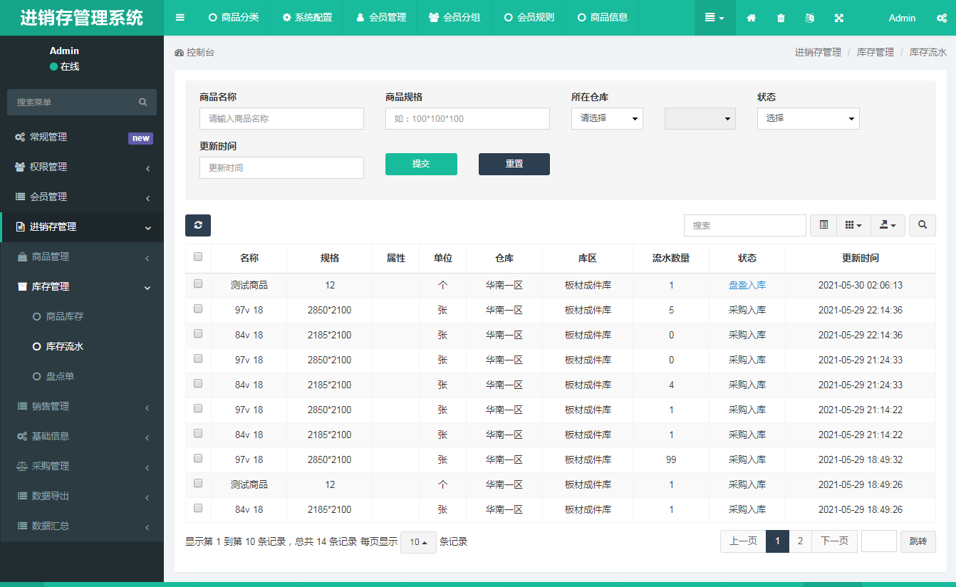 3、支持产品出库、入库的数据导出
