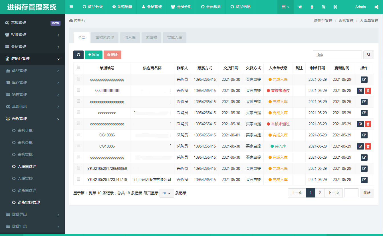 1、支持采购单录入、审核、入库、退货等采购过程中的记录追踪