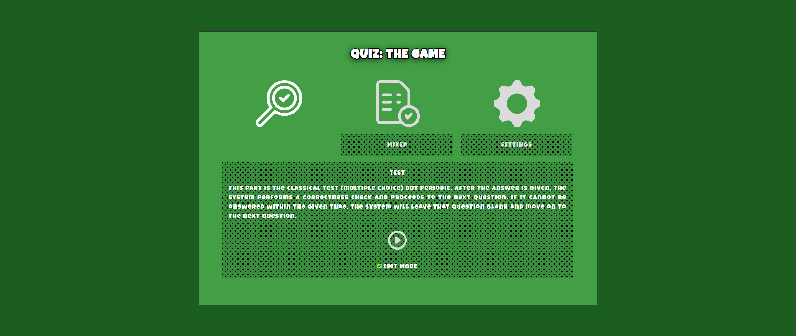 – 在主菜单中开始测试部分之前,您可以通过勾选“编辑模式”选项来更改问题和答案。