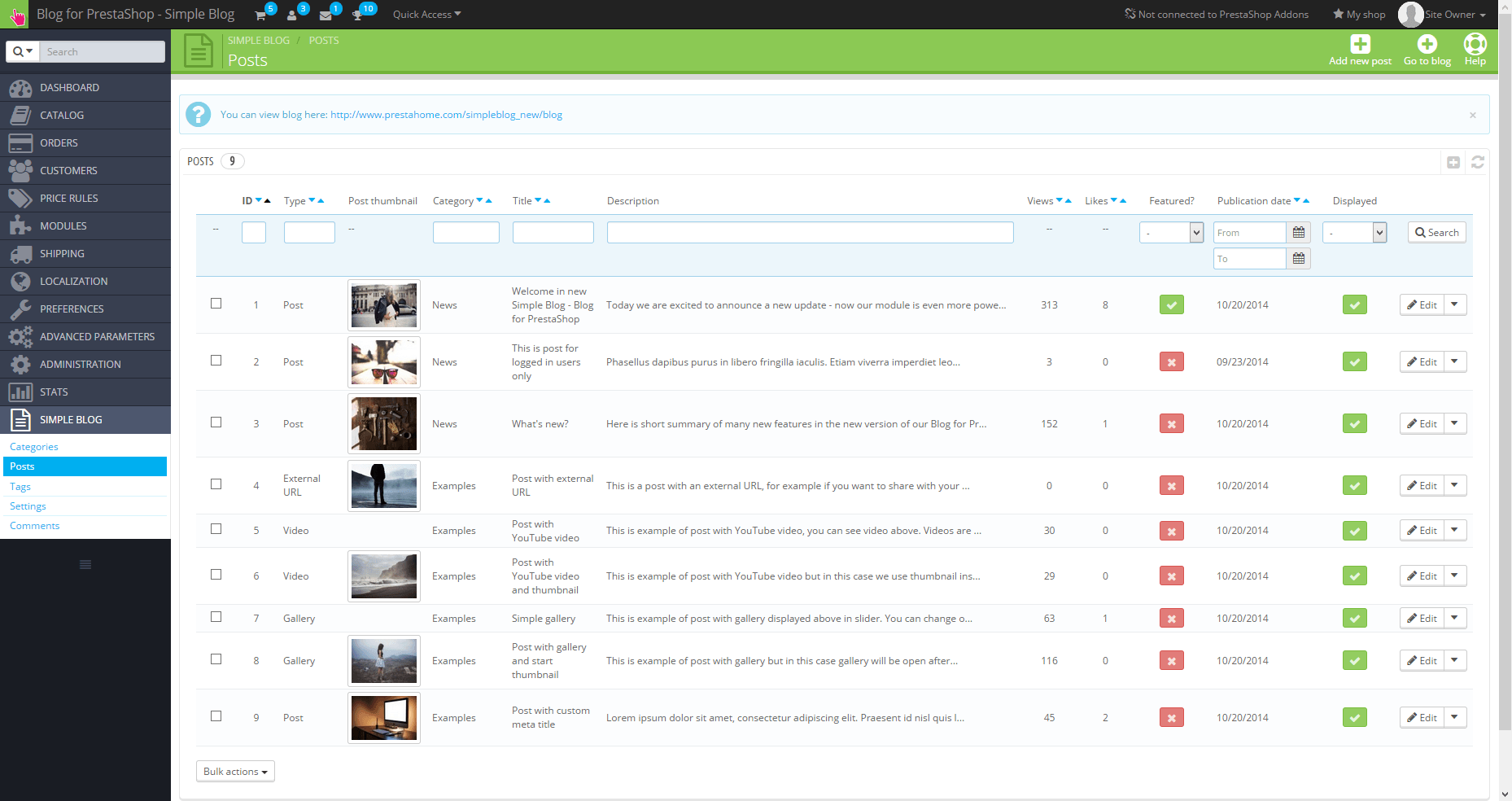 我们创建了很多 PrestaShop 商店,我们对简单和 SEO 友好的机制提出了许多要求,以在商店中创建更多内容。类似于… PrestaShop 的博客 – 他们不想安装 WordPress,他们想要一些简单的东西,并且有… PrestaShop 的 PrestaHome 博客 – 易于管理、功能强大的解决方案,可帮助您在商店中创建更多内容。
