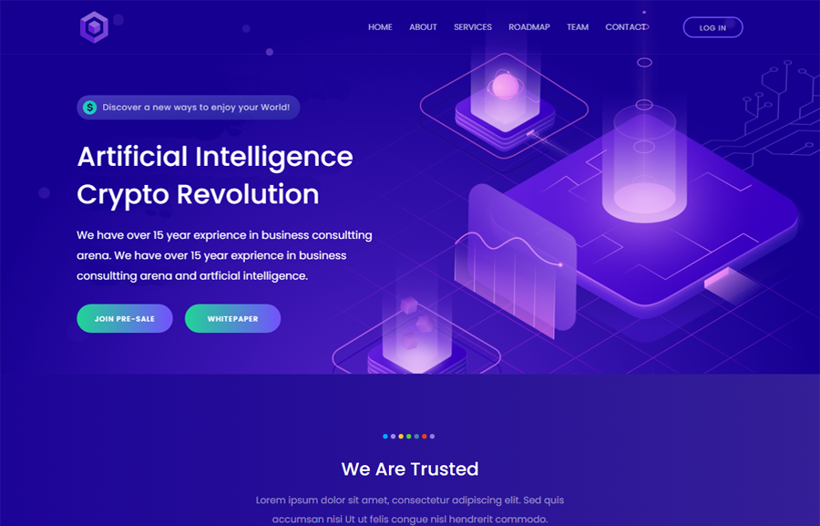 Cryptiko 是我们为 ICO 演示和新的加密硬币、比特币挖掘网站、加密货币兑换和交易、数字货币、财务和业务咨询创建的新 React js ICO 和加密登陆页面,也是在线数字支付系统的完美登陆页面。