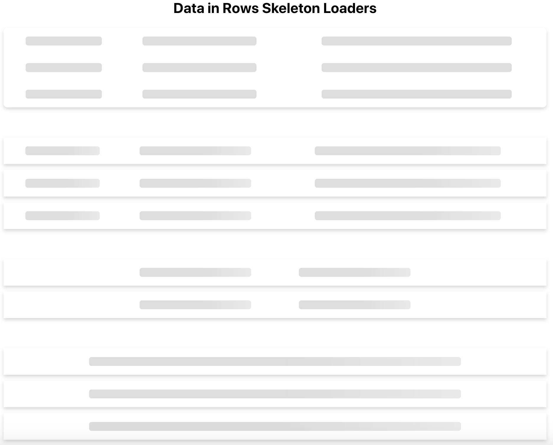 HTML 文件包括: – 模拟“帖子”的四个骨架加载器变体 -模拟“数据行”的四个骨架加载器变体 -模拟“垂直矩形卡片视图”的四个骨架加载器变体 -“正方形”的四个变体 卡片视图”