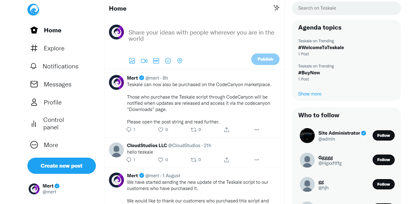 Teskale-SM 是新一代脚本,您可以使用它创建自己的社交媒体平台!