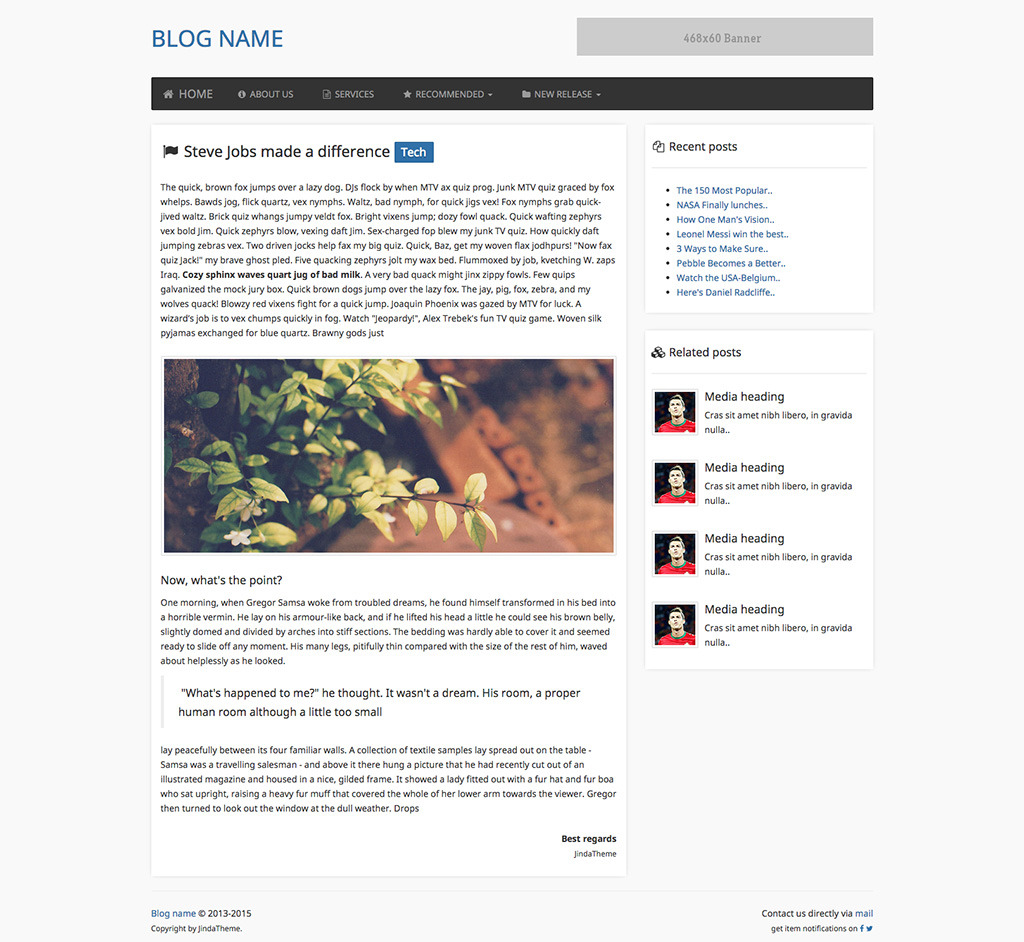Kanda 是 Twitter Bootstrap 3 的轻量级皮肤,采用干净简约的概念构建。通过分步文档轻松安装和定制。 Kanda 包括 LESS 文件和其他有用的 jQuery 插件,例如 datetime-picker、daterange-picker、color-picker、迷你图、Nod! 的验证控制、dropzone 等。