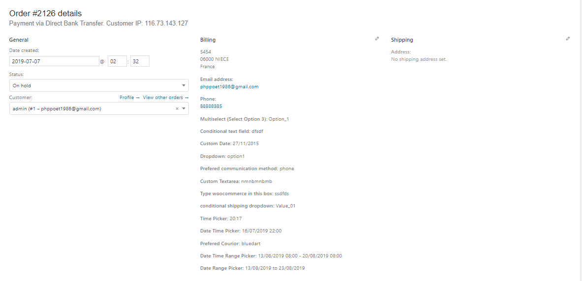 添加 – 在 WooCommerce PDF 发票和装箱单发票中显示提交的字段详细信息。