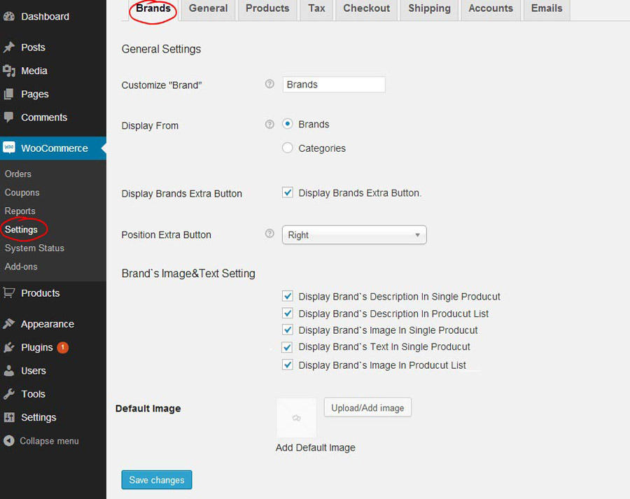 * 固定 – 在 woocoemmerce 设置中设置优先品牌选项卡