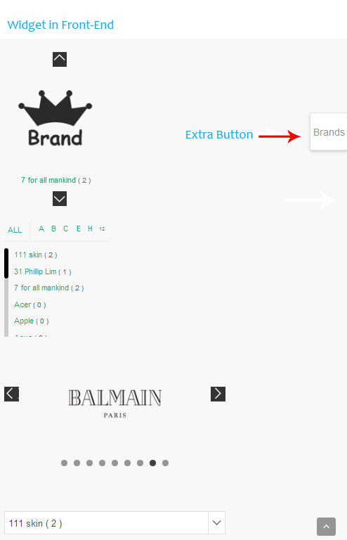 在额外按钮中显示带有 A-Z 过滤器的品牌(左/右 Silde)