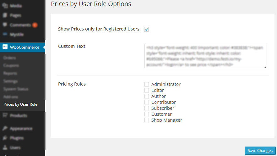 此插件还旨在隐藏 WooCommerce 价格和/“添加到购物车”按钮对您的在线商店中的非注册用户或个人角色组等等。按用户角色定价是一款出色的电子商务工具,可让您的在线商店变得更好!