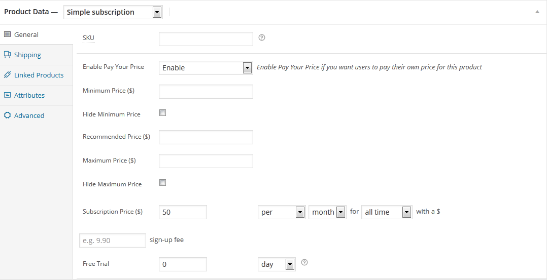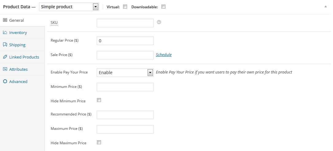 – 将简单产品中的复选框更改为列表框启用支付您的价格