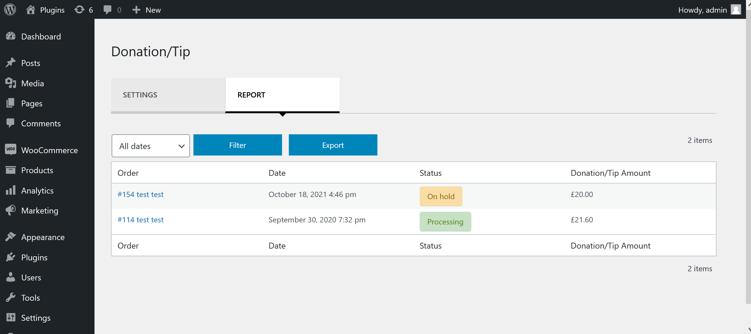 * 添加报告功能,以便管理员可以导出订单的捐赠金额