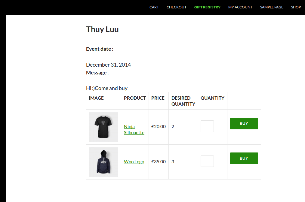借助 Magenest 的 WooCommerce 礼品注册表,客户可以将您商店中的商品添加到他们的注册表中,然后通过社交网络将注册表分享给他们的朋友。能够查看注册表的朋友和家人可以轻松购买该项目并为注册人留言。这样,礼品登记不仅可以帮助客户在特殊的日子里得到他们想要的东西,还可以增加您的销售额。