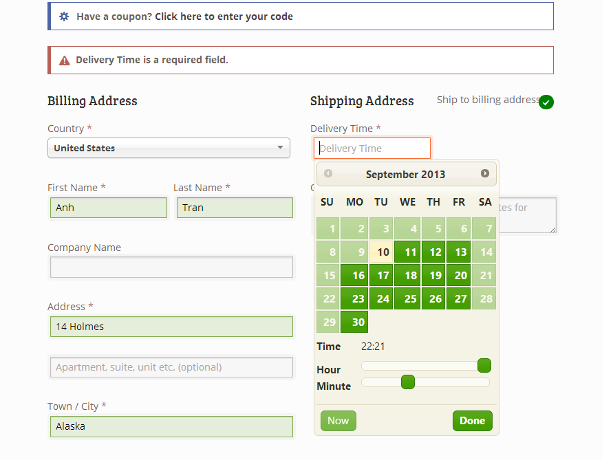 如果您想让客户只选择预定义的时间段,请检查 WooCommerce 交付时间段(它们在每个规格中都相似,除了时间选择器)。