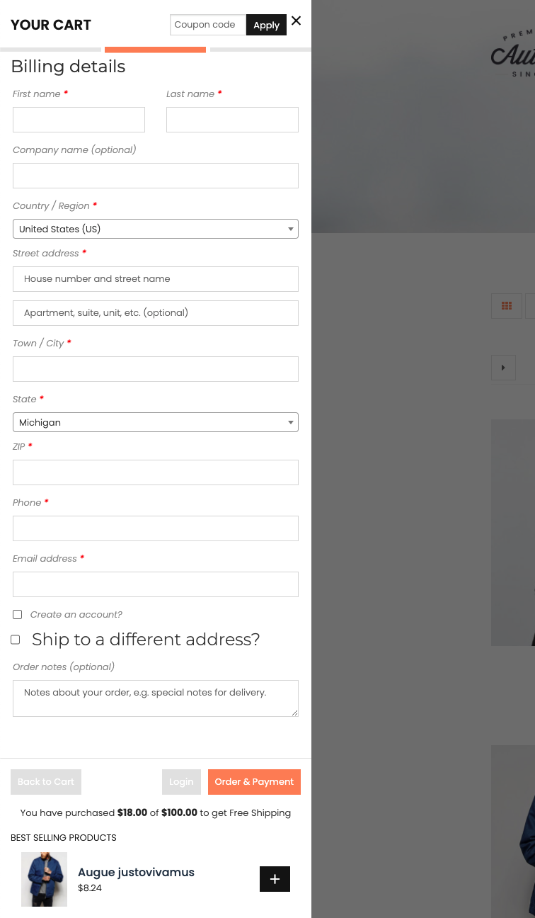 直接在侧边栏购物车上结帐:结帐步骤已集成到侧边栏购物车中。客户可以直接在侧边栏购物车上结帐,而无需转到结帐页面。此功能将鼓励客户快速完成订单并提高您的销售额。