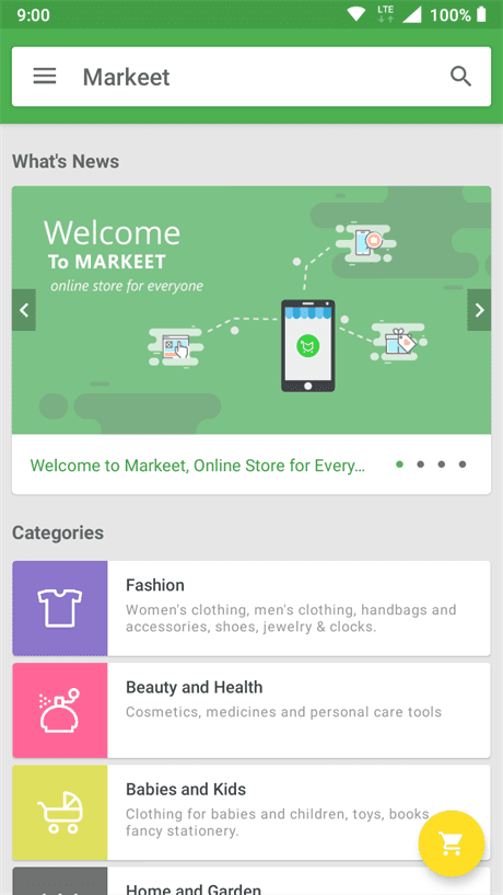 Marketet 是 android Online Store,此项目是通过 android 应用程序运行您的在线商店、促销和销售产品的解决方案。实施简单的菜单和导航,为您的客户提供令人惊叹的购物体验。您可以管理您的产品、类别、新闻信息、发送通知等等。