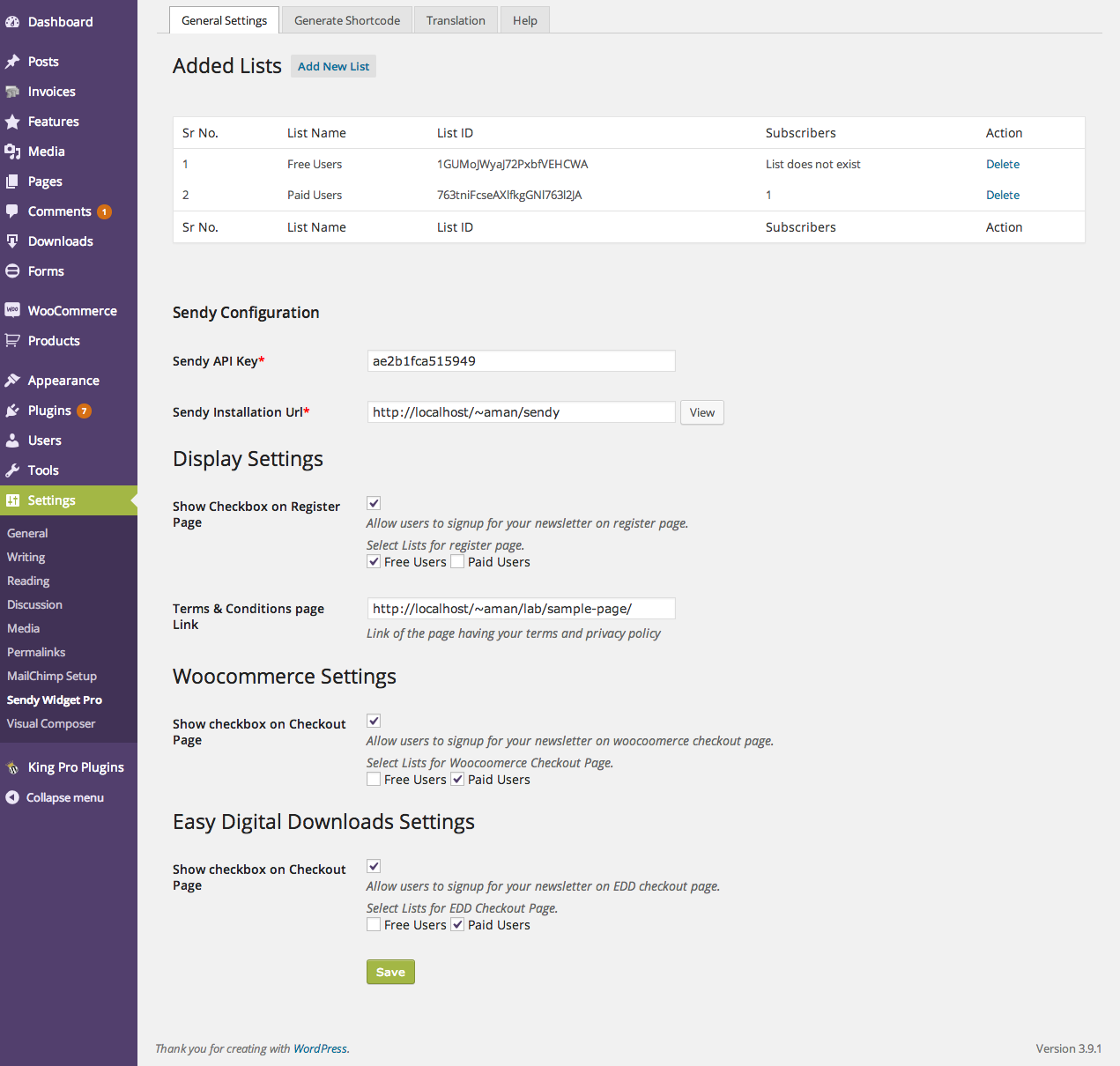 注意:您需要在服务器上安装 Sendy 才能使用此插件