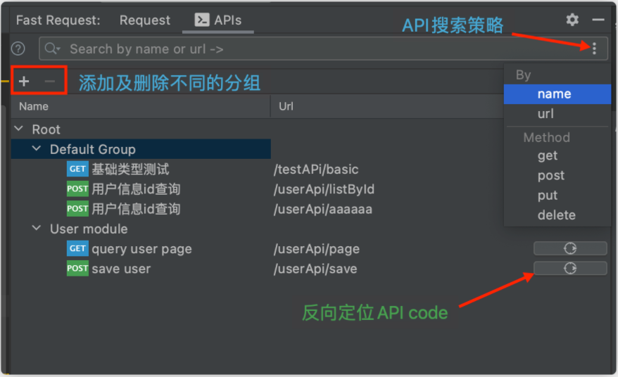 保存的请求默认会放入Default Group中,支持拉拽放入别的组