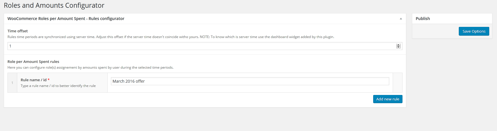 每次客户下单或店员保存订单或更改订单状态(使用 WC_Order 方法或管理区域)时,插件都会检查是否存在与当前时间匹配的“金额角色规则”,并将其应用于客户的金额。可以选择推迟每个规则分配,指定角色分配必须发生的另一个日期。