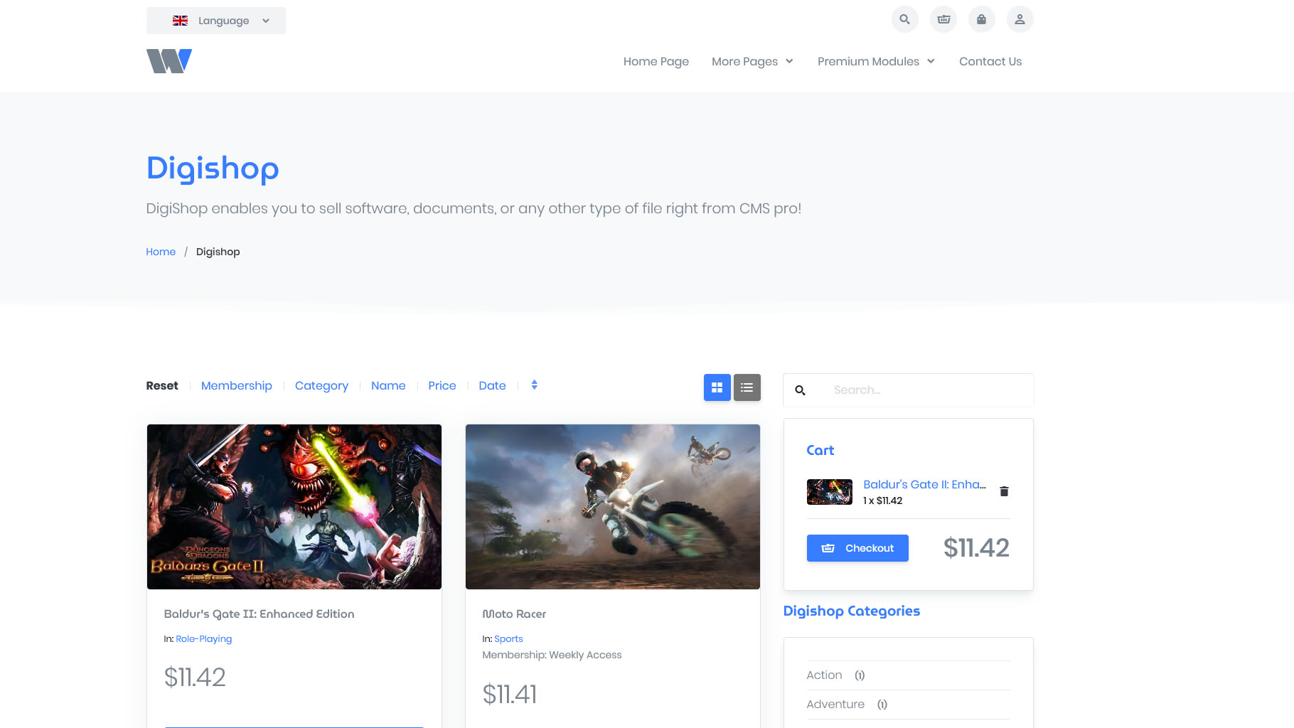 DigiShop 是一个 CMS 专业高级模块,旨在使您能够从您的站点销售数字下载