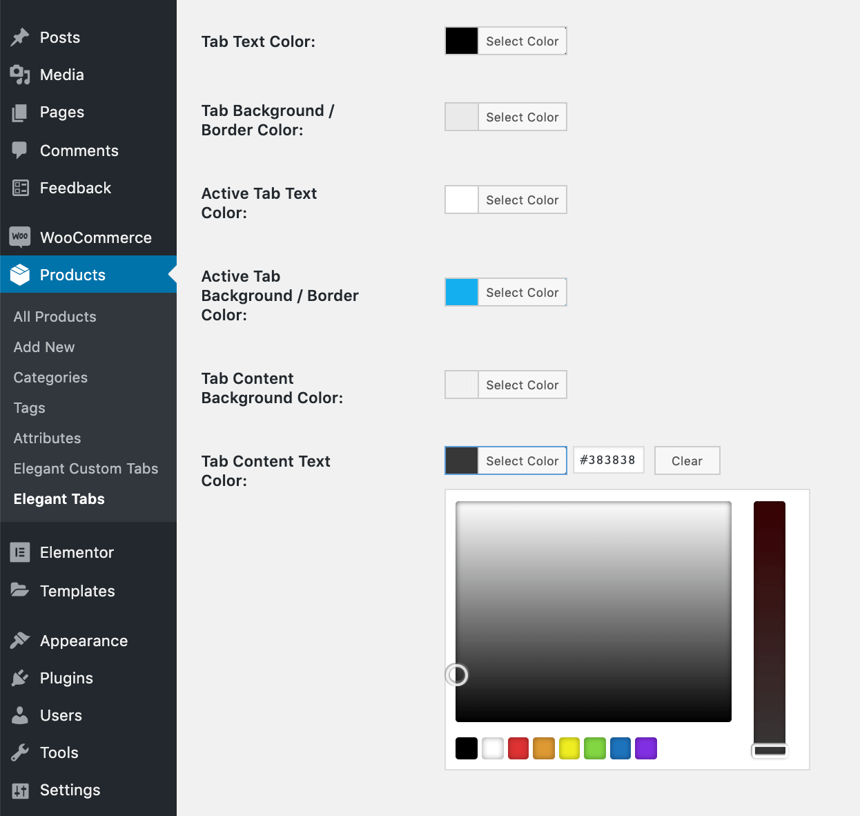 我们在 WooCommerce -> 设置 -> 优雅的自定义选项卡中添加了设置,以帮助您禁用默认的 WooCommerce 选项卡。