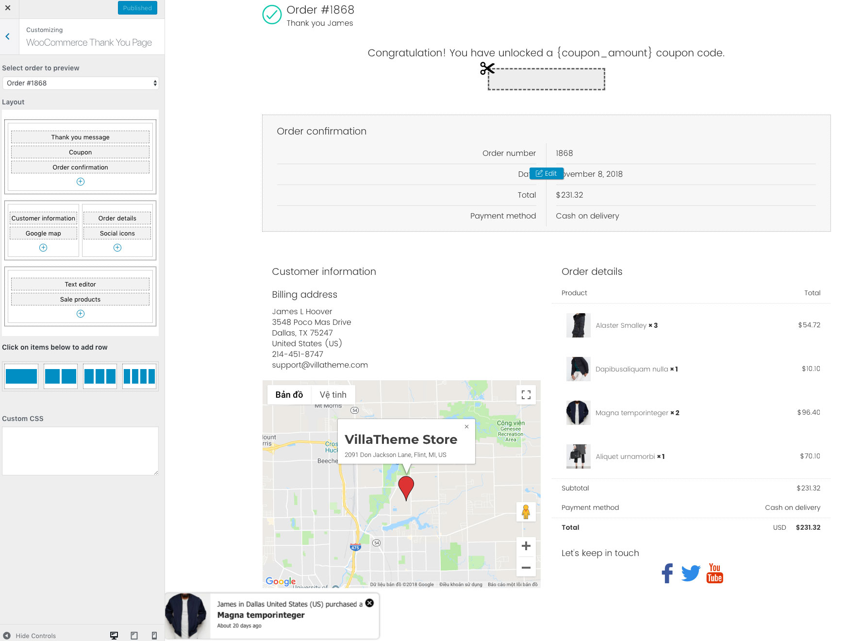 WOOCOMMERCE THANK YOU PAGE CUSTOMIZER 的特点