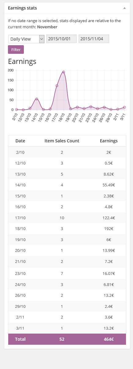 商店管理员还可以设置自定义时间范围并显示每天、每月或每年的数据!