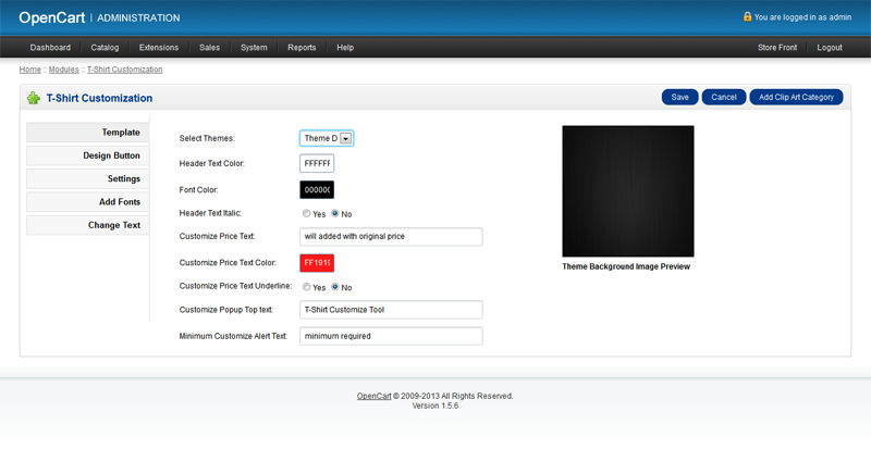 OpenCart 定制 T 恤设计的管理功能