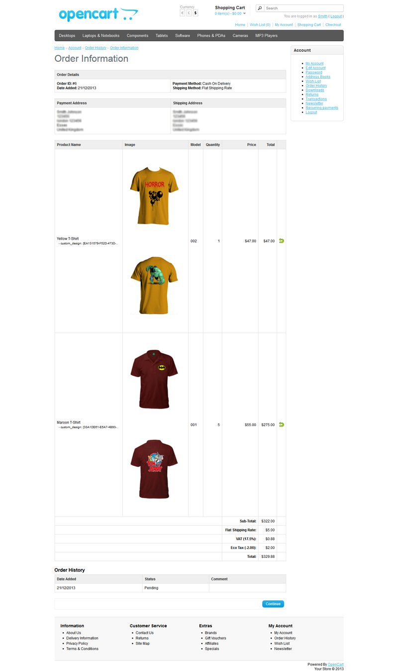 OpenCart 定制 T 恤设计的新功能